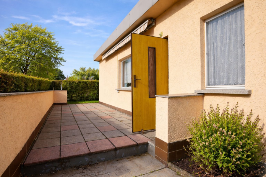 Besonders hervorzuheben ist der Außenbereich: Die großzügige Terrasse mit installierter Markise schafft einen geschützten Platz für entspannte Stunden im Freien – selbst an warmen Sommertagen. Der Garten lädt dazu ein, die Natur in vollen Zügen zu genießen und bietet vielfältige Möglichkeiten zur persönlichen Entfaltung.