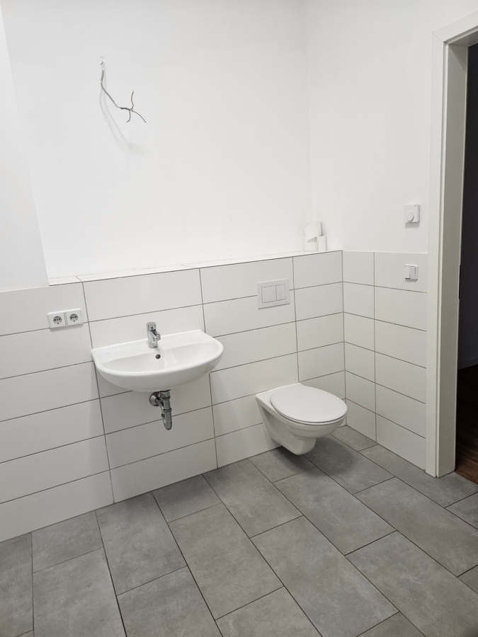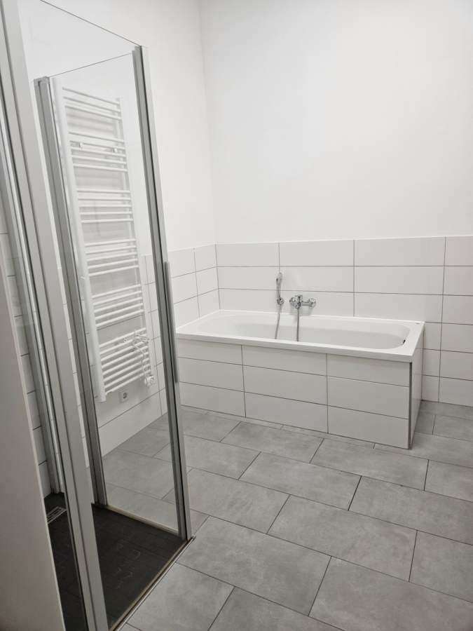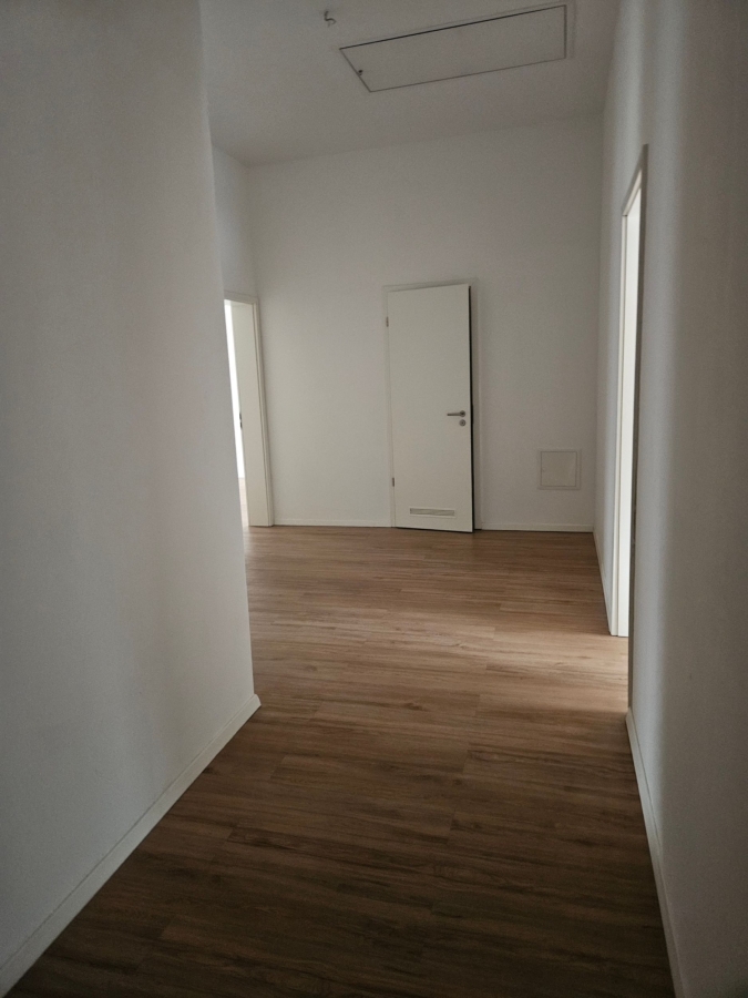 Die moderne 3-Zimmer Wohnung im Obergeschoss des Hauses 12 b verfügt über eine Fußbodenheizung, ein Wannenbad sowie einer Dusche. Die amerikanische Küche grenzt an den Wohnbereich. Zur Wohnung gehört weiterhin zwei PKW-Stellplätze.